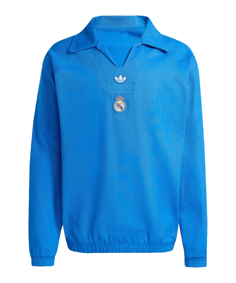 Mit dem adidas Real Madrid Icon Drill Sweatshirt kannst du deine Leidenschaft für den Fußballclub Real Madrid stilvoll zur Schau stellen. Dieses Sweatshirt von adidas ist ideal für deine Freizeitaktivitäten und zeigt, dass du ein echter Fan bist.