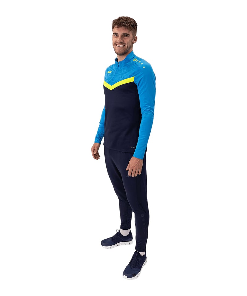 Das JAKO Iconic HalfZip Sweatshirt in Marine- und JAKO-Blau mit Neongelb gehört zum Teamsport-Sortiment. Schauen wir, ob die Produkt-Specs zu deinen Anforderungen passen: